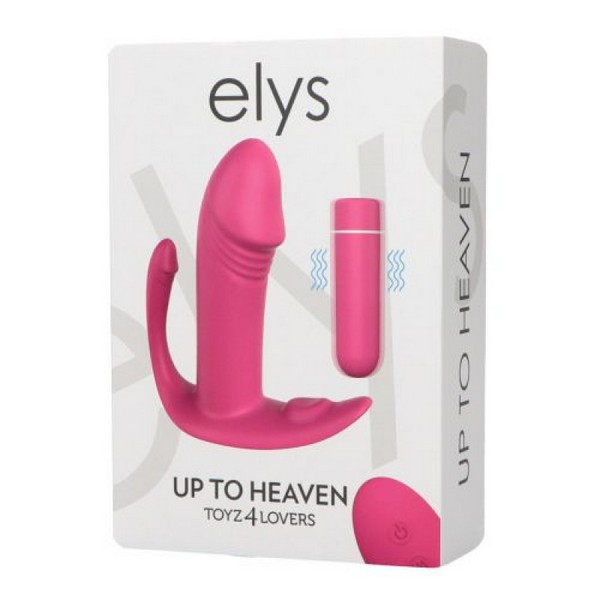 - L’Up To Heaven è un sex toy dalla tripla stimolazione. Potente ma silenzioso, riesce a massaggiare contemporaneamente vagina, ano e clitoride grazie alla forma appositamente studiata per stimolare l’intera zona erogena femminile. Una volta inserito il mini bullet all’interno dell’estremità più lunga, basta azionarlo e regolare le diverse intensità di vibrazione anche utilizzando il telecomando wireless incluso. Realizzato in morbido silicone medicale e Abs, privo di lattice e ftalati, è soft touch e waterproof. Ha dimensioni compatte e si ricarica tramite cavo USB magnetico in dotazione.
